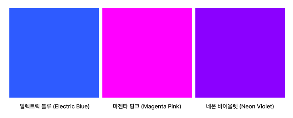 - Hyper Real (하이퍼 리얼): 반대로 시선을 확 사로잡는 선명한 일렉트릭 블루나 형광 빛이 도는 마젠타 핑크다. 메타버스나 AI 아트에서 자주 보이는, 현실을 넘어선 듯한 강렬한 에너지를 준다.