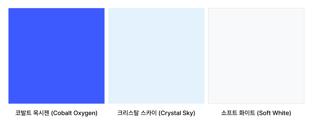 - IT/테크/AI 서비스: ‘트러스트 블루(Trust Blue)’에서 조금 더 밝아진 ‘코발트 옥시젠(Cobalt Oxygen)’을 추천한다. 신뢰감과 혁신성을 동시에 준다.