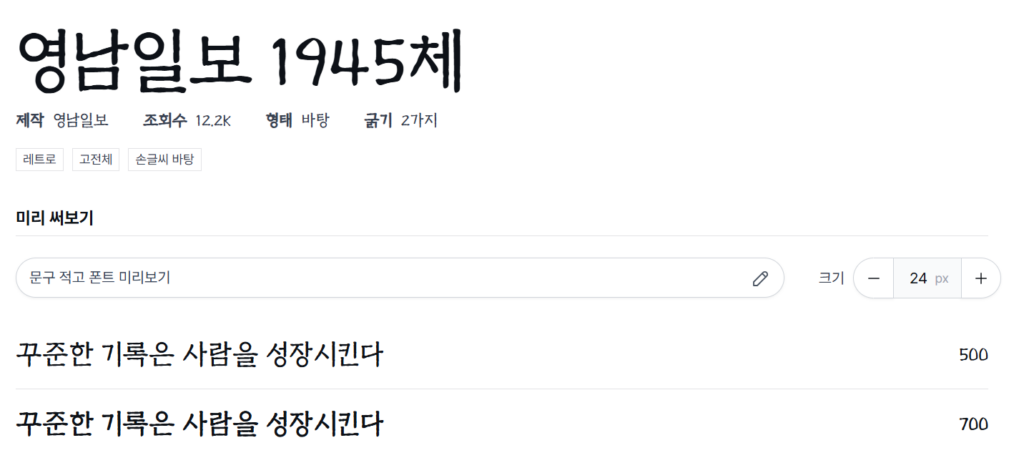클래식한 바탕체 계열이다. 신문이나 미디어 특유의 진지한 분위기를 낼 때 유용하다. 인문학적 소양을 강조해야 하는 과제나 격식 있는 제안서에 추천한다.